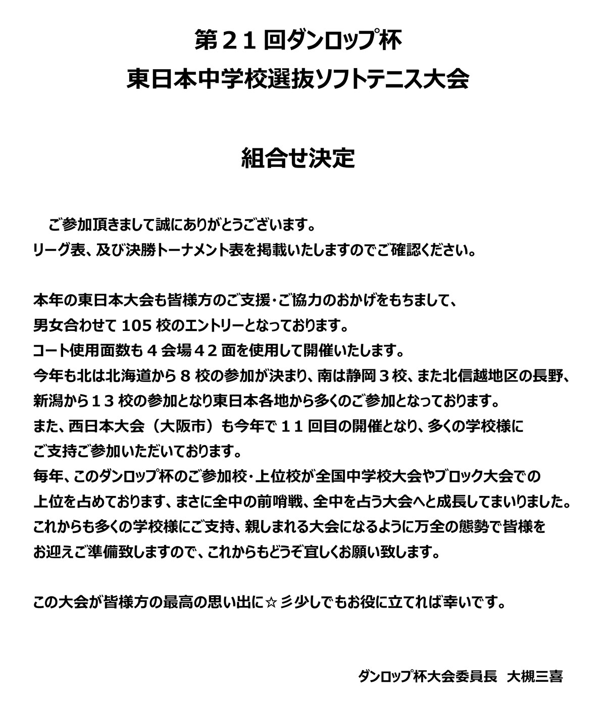 第21回ダンロップ杯東日本中学校選抜ソフトテニス大会組合せ決定