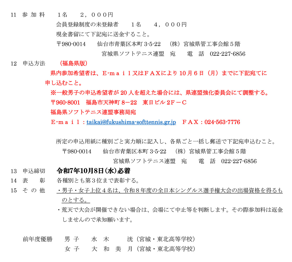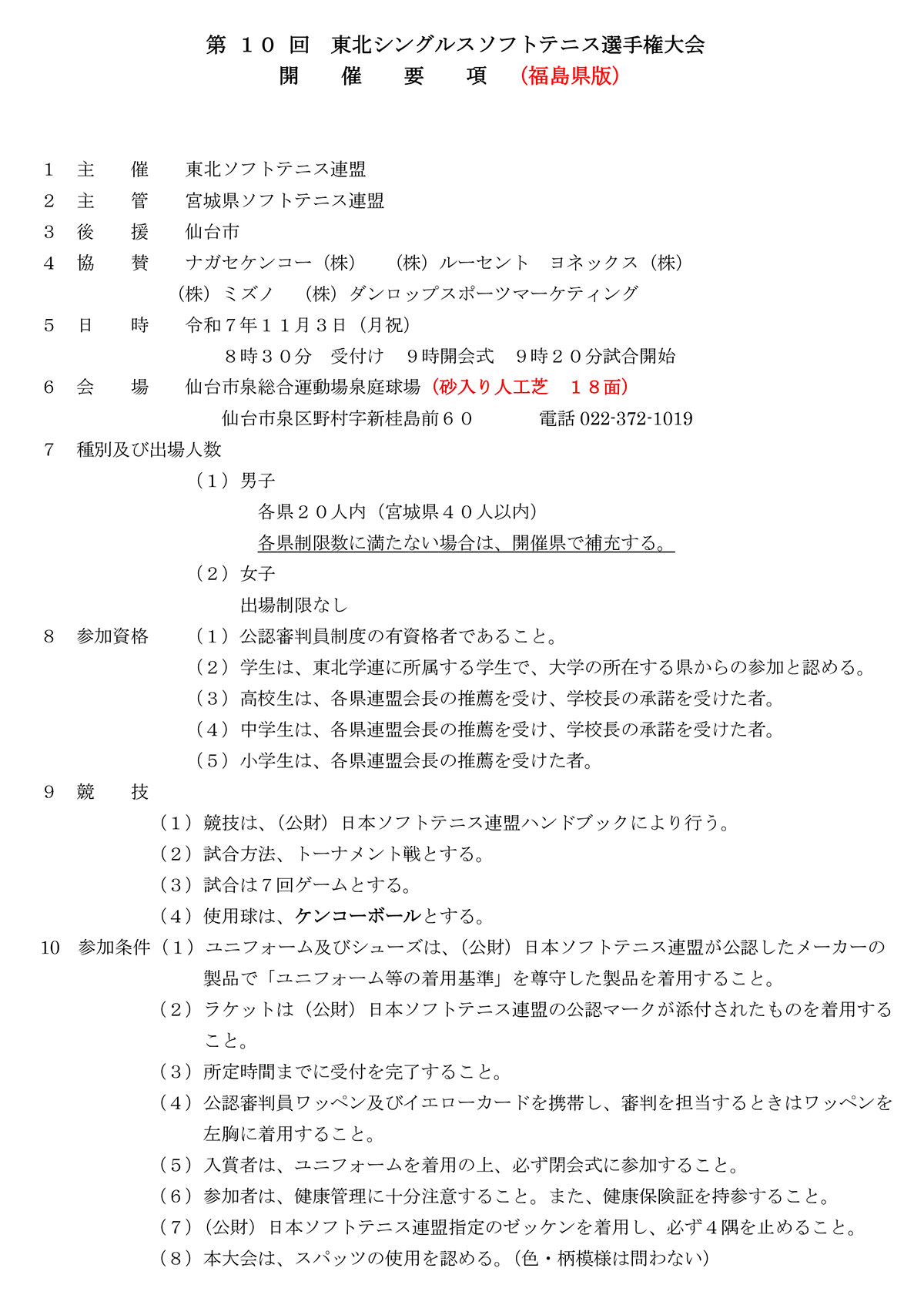 第10回東北シングルスソフトテニス選手権大会要項(福島県版)