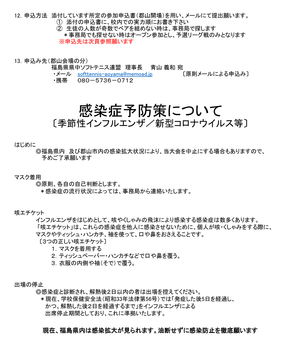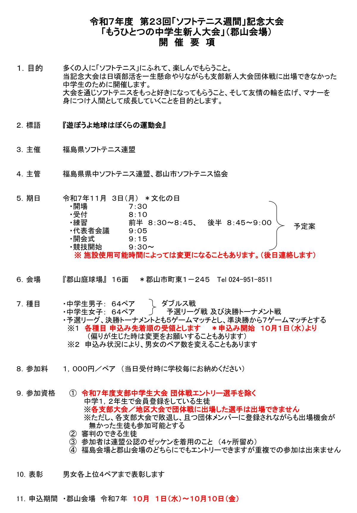 • 「もうひとつの中学生新人大会」(郡山会場)要項