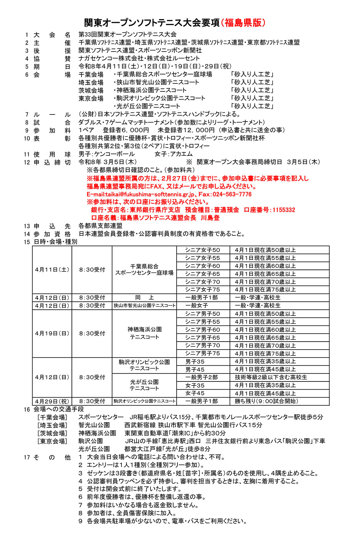 関東オープンソフトテニス大会要項(福島県版)