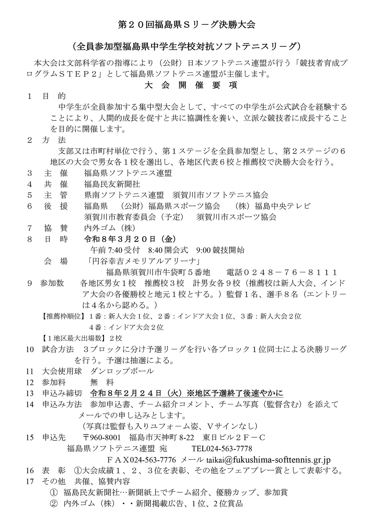 第20回福島県Sリ-グ決勝大会 要項