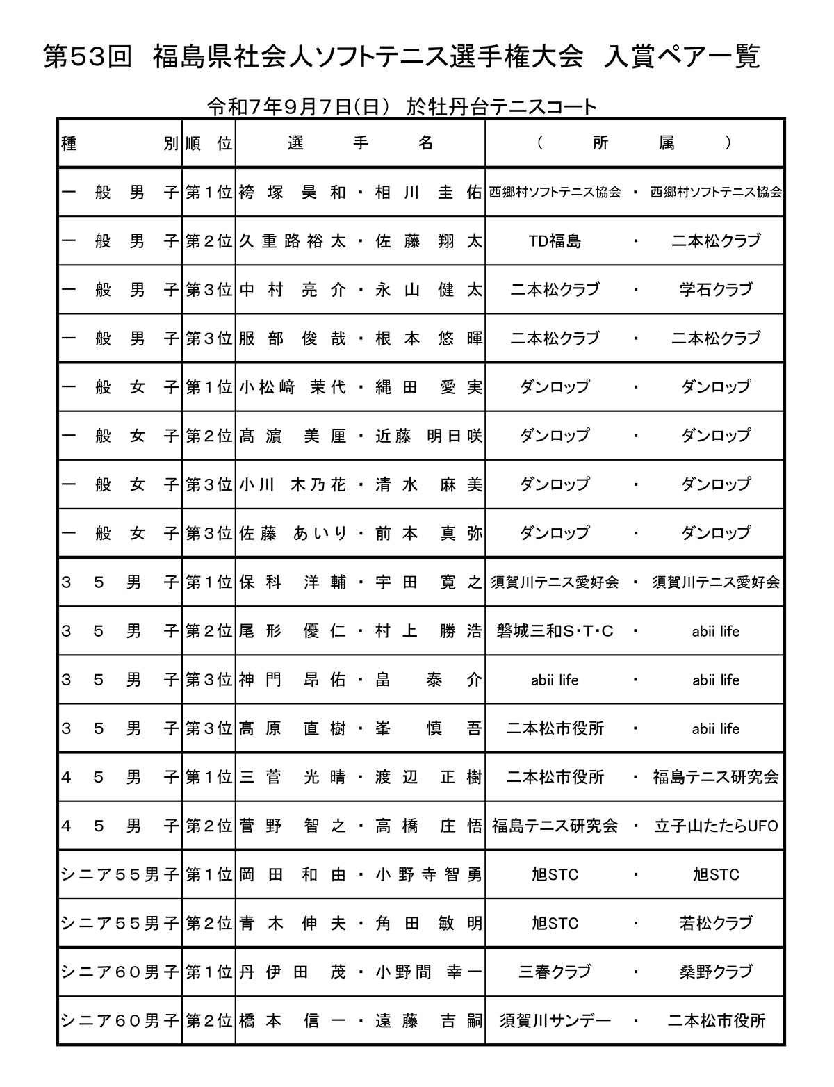 令和7年度 福島県社会人選手権大会 結果