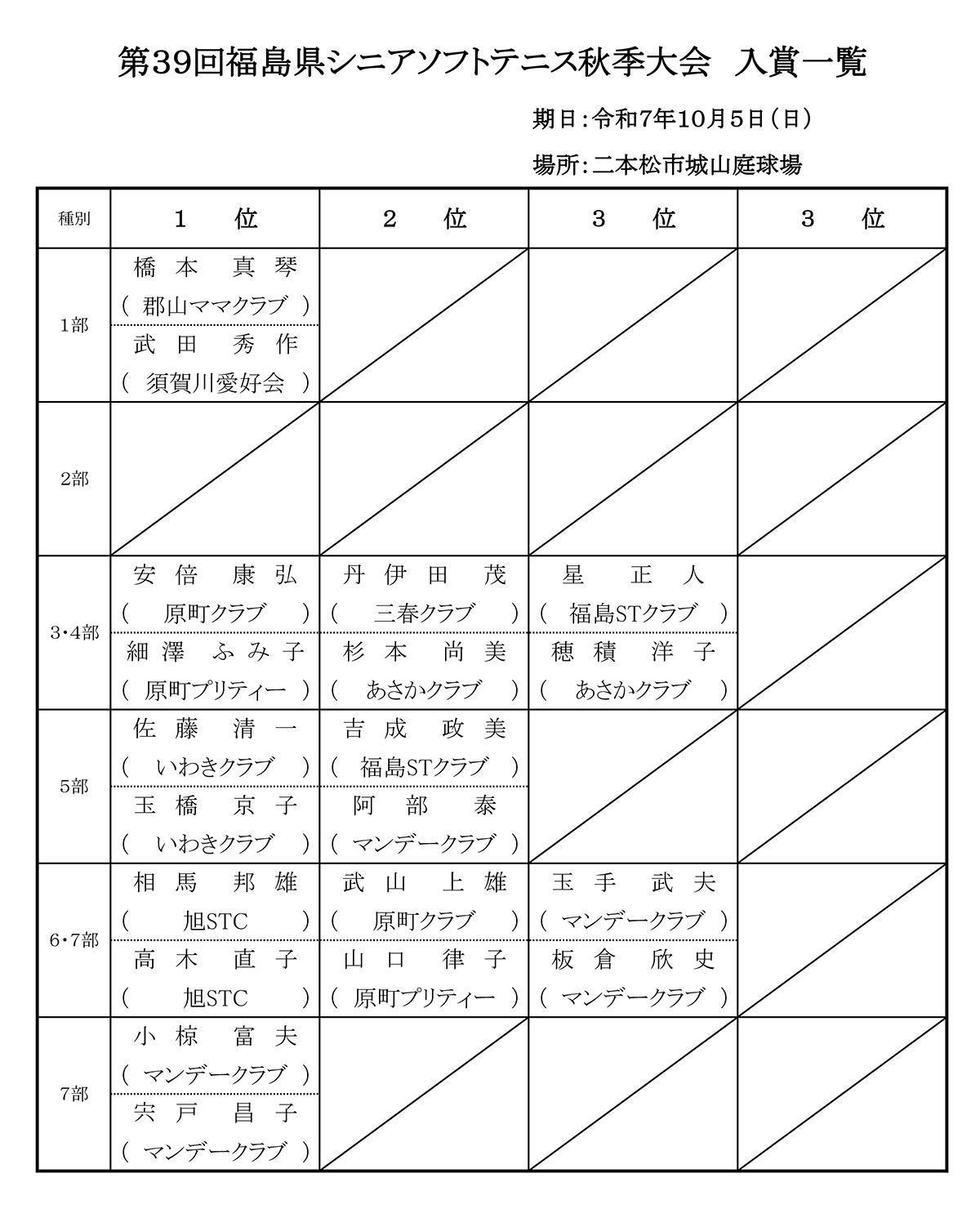 Home > 大会結果 > 令和7年度 福島県シニア秋季大会 結果